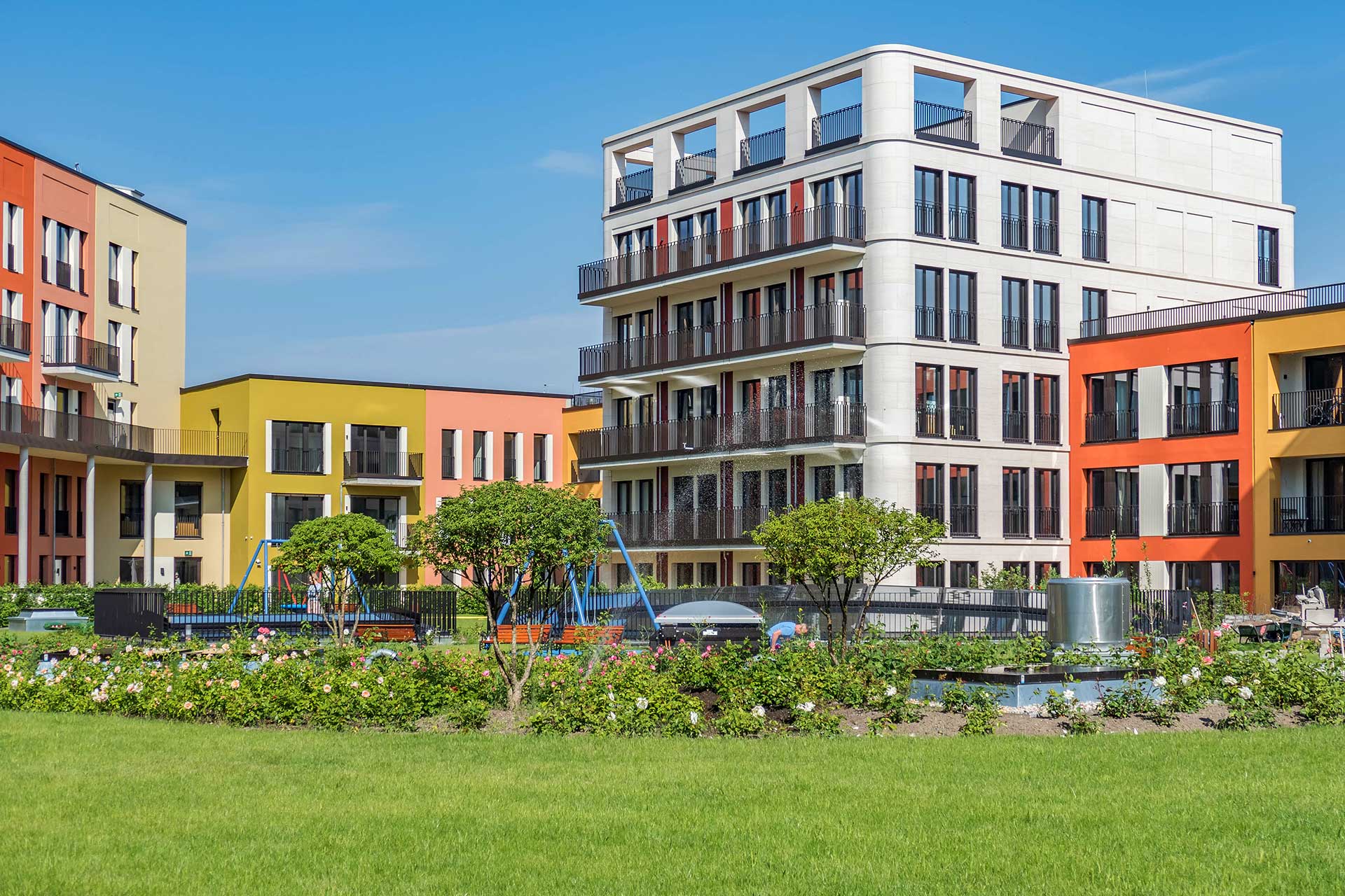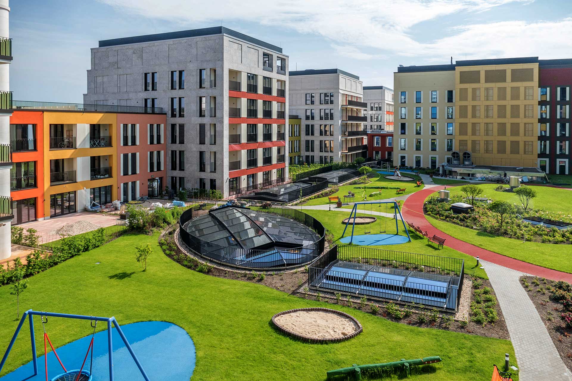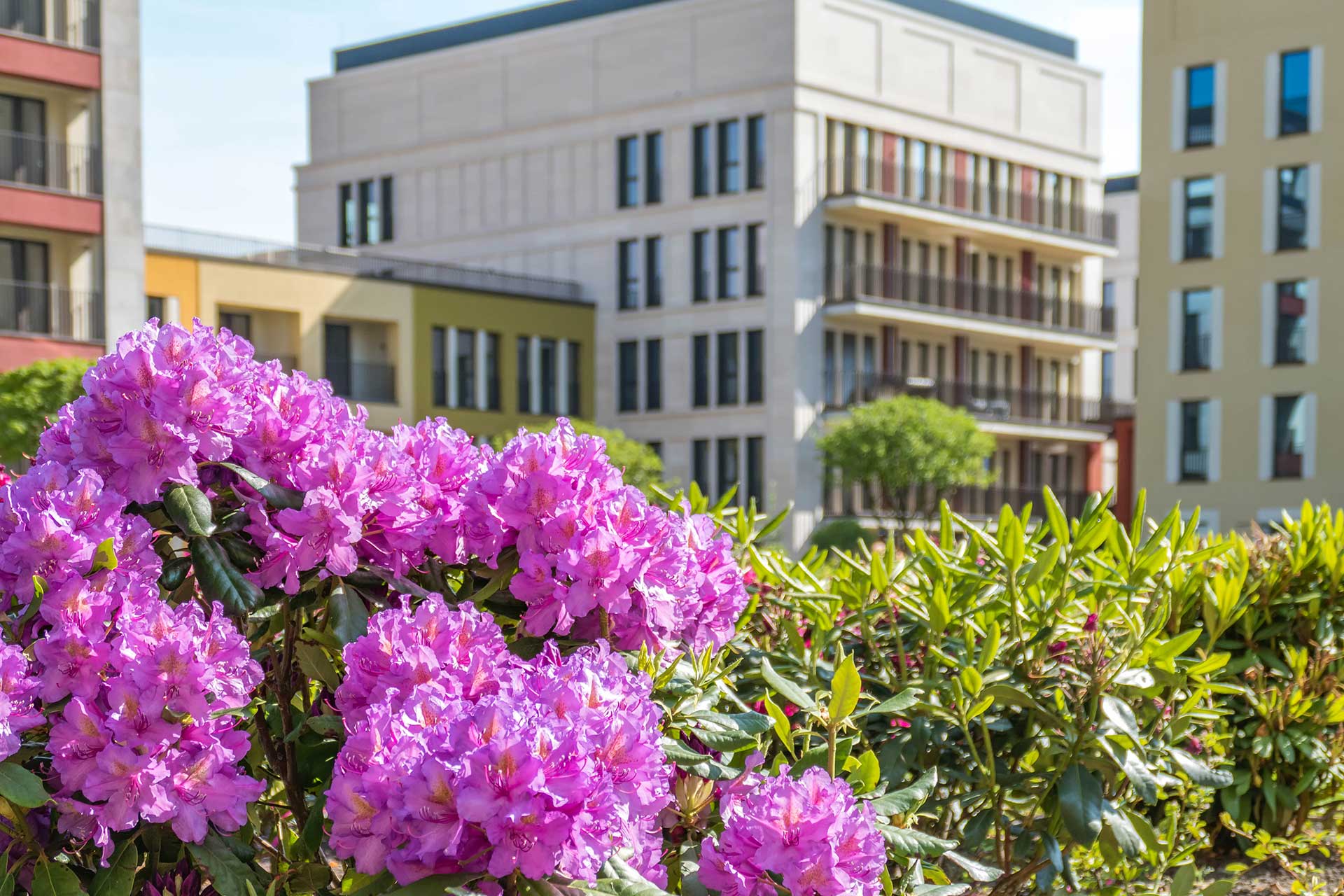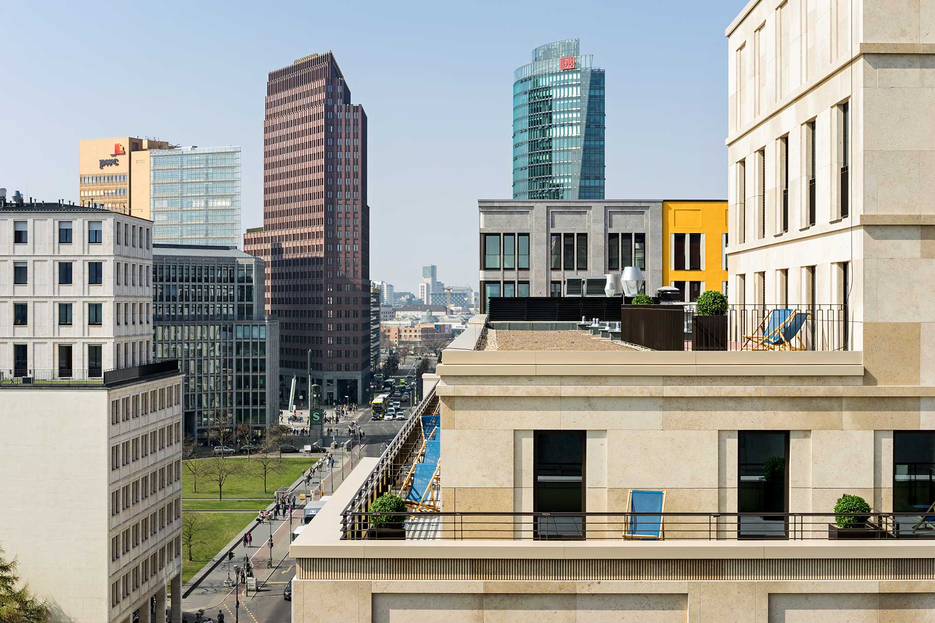 Auf dem Dach der Mall of Berlin befindet sich das Leipziger Platz Quartier – ein einzigartiges Wohnquartier. Ein Highlight ist der begrünte Innenhof hoch über der Stadt. Der Treffpunkt im Grünen ist nur für Mieter*innen zugänglich und zugleich ein Refugium für Erholung suchende Großstädter und sicherer Playground für Kinder mitten in der Stadt.